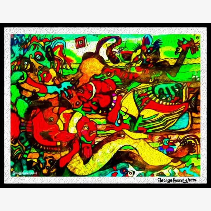 Explore emotion and form with this neo-figurative artwork. Featuring human figures and abstract elements intertwined in an expressive composition, this painting invites reflection and sparks the imagination. Ideal for contemporary art lovers seeking pieces with emotional depth and bold visual language.