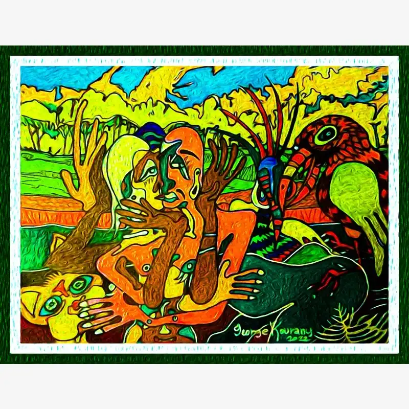 Explore emotion and form with this neo-figurative artwork. Featuring human figures and abstract elements intertwined in an expressive composition, this painting invites reflection and sparks the imagination. Ideal for contemporary art lovers seeking pieces with emotional depth and bold visual language.