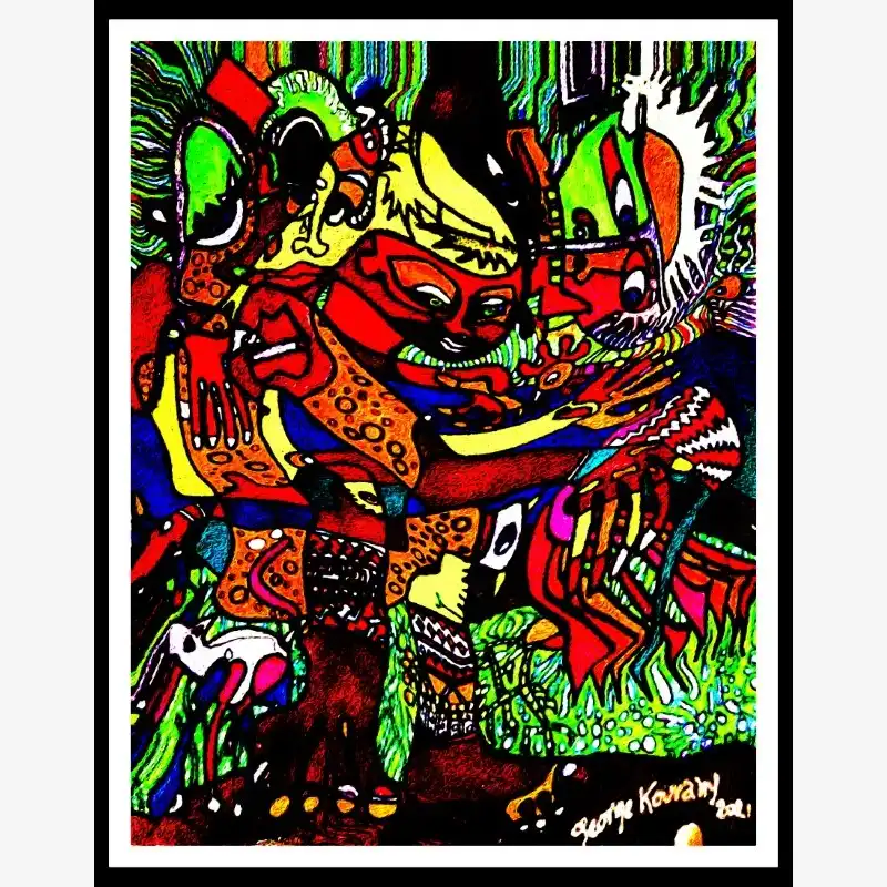 Explore emotion and form with this neo-figurative artwork. Featuring human figures and abstract elements intertwined in an expressive composition, this painting invites reflection and sparks the imagination. Ideal for contemporary art lovers seeking pieces with emotional depth and bold visual language.