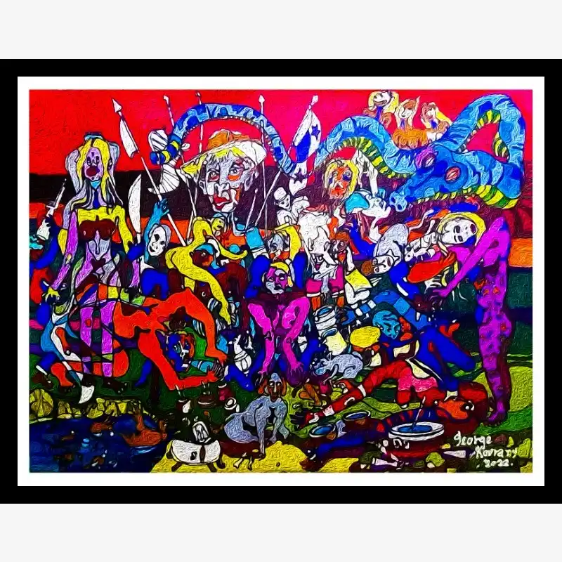 Explore emotion and form with this neo-figurative artwork. Featuring human figures and abstract elements intertwined in an expressive composition, this painting invites reflection and sparks the imagination. Ideal for contemporary art lovers seeking pieces with emotional depth and bold visual language.