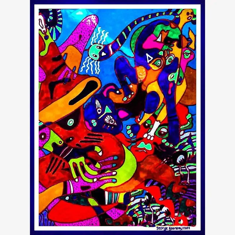Explore emotion and form with this neo-figurative artwork. Featuring human figures and abstract elements intertwined in an expressive composition, this painting invites reflection and sparks the imagination. Ideal for contemporary art lovers seeking pieces with emotional depth and bold visual language.