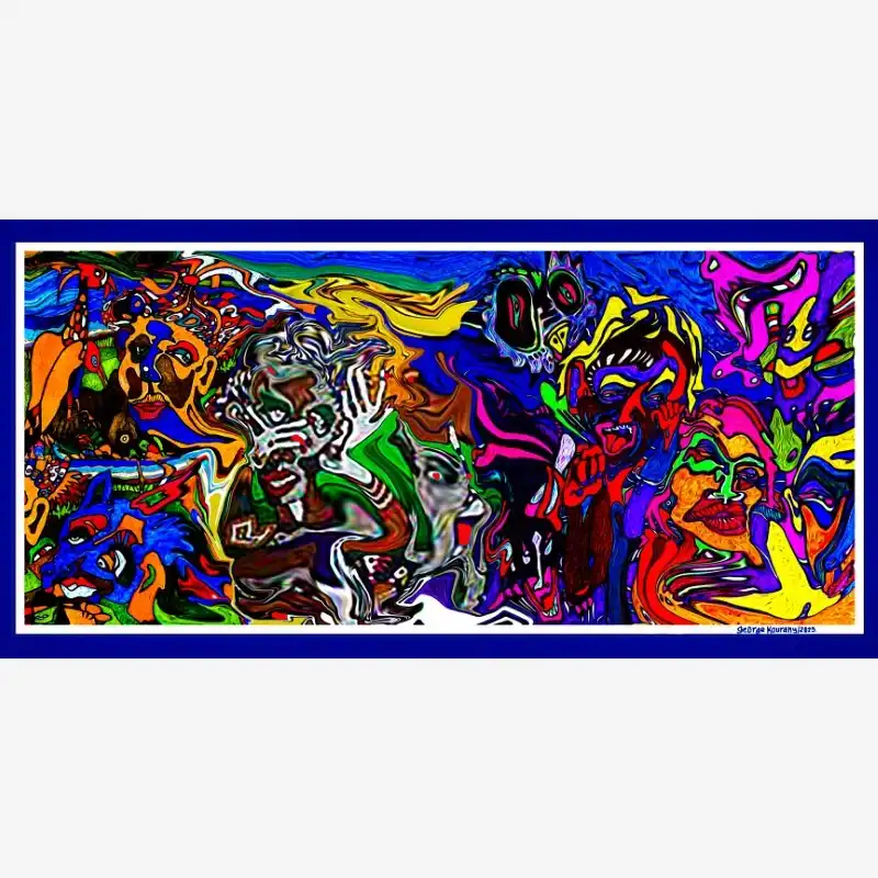 Explore emotion and form with this neo-figurative artwork. Featuring human figures and abstract elements intertwined in an expressive composition, this painting invites reflection and sparks the imagination. Ideal for contemporary art lovers seeking pieces with emotional depth and bold visual language.