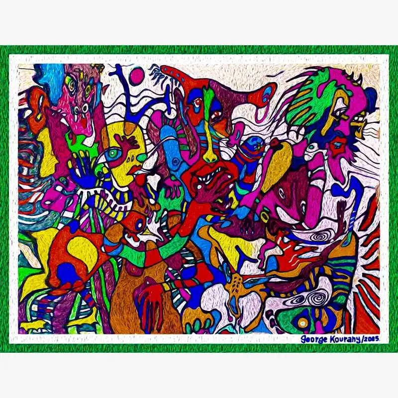 Explore emotion and form with this neo-figurative artwork. Featuring human figures and abstract elements intertwined in an expressive composition, this painting invites reflection and sparks the imagination. Ideal for contemporary art lovers seeking pieces with emotional depth and bold visual language.