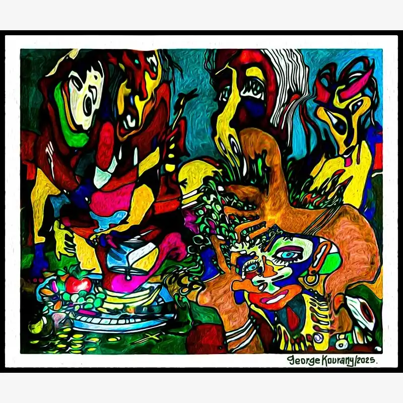 Explore emotion and form with this neo-figurative artwork. Featuring human figures and abstract elements intertwined in an expressive composition, this painting invites reflection and sparks the imagination. Ideal for contemporary art lovers seeking pieces with emotional depth and bold visual language.