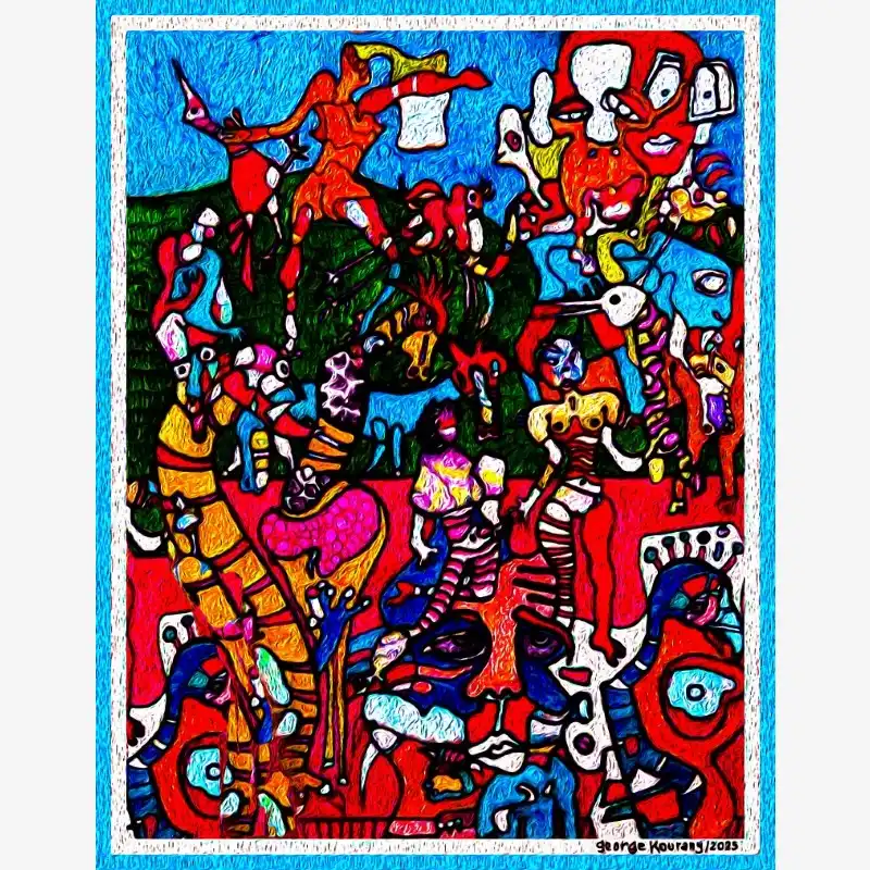 Explore emotion and form with this neo-figurative artwork. Featuring human figures and abstract elements intertwined in an expressive composition, this painting invites reflection and sparks the imagination. Ideal for contemporary art lovers seeking pieces with emotional depth and bold visual language.