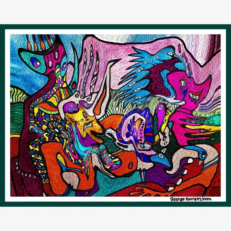 Explore emotion and form with this neo-figurative artwork. Featuring human figures and abstract elements intertwined in an expressive composition, this painting invites reflection and sparks the imagination. Ideal for contemporary art lovers seeking pieces with emotional depth and bold visual language.