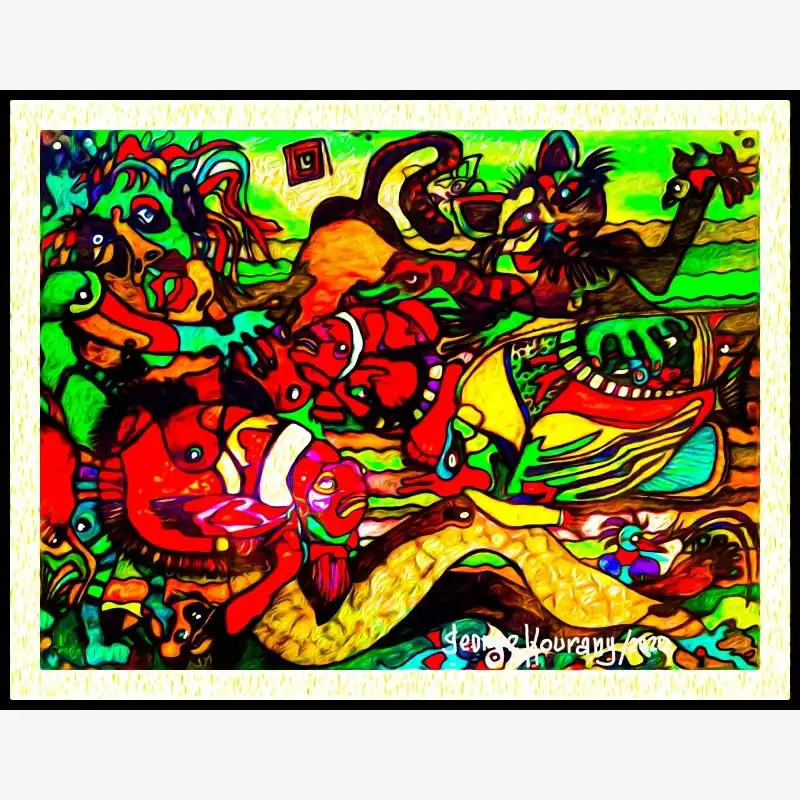 Explore emotion and form with this neo-figurative artwork. Featuring human figures and abstract elements intertwined in an expressive composition, this painting invites reflection and sparks the imagination. Ideal for contemporary art lovers seeking pieces with emotional depth and bold visual language.