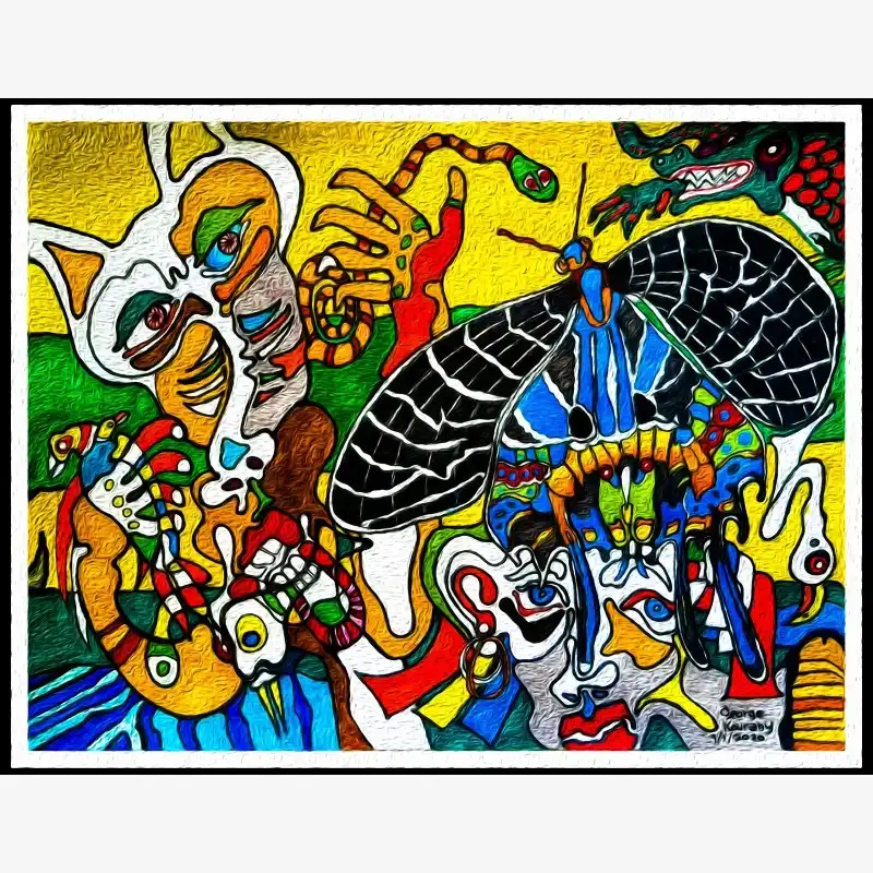 Explore emotion and form with this neo-figurative artwork. Featuring human figures and abstract elements intertwined in an expressive composition, this painting invites reflection and sparks the imagination. Ideal for contemporary art lovers seeking pieces with emotional depth and bold visual language.