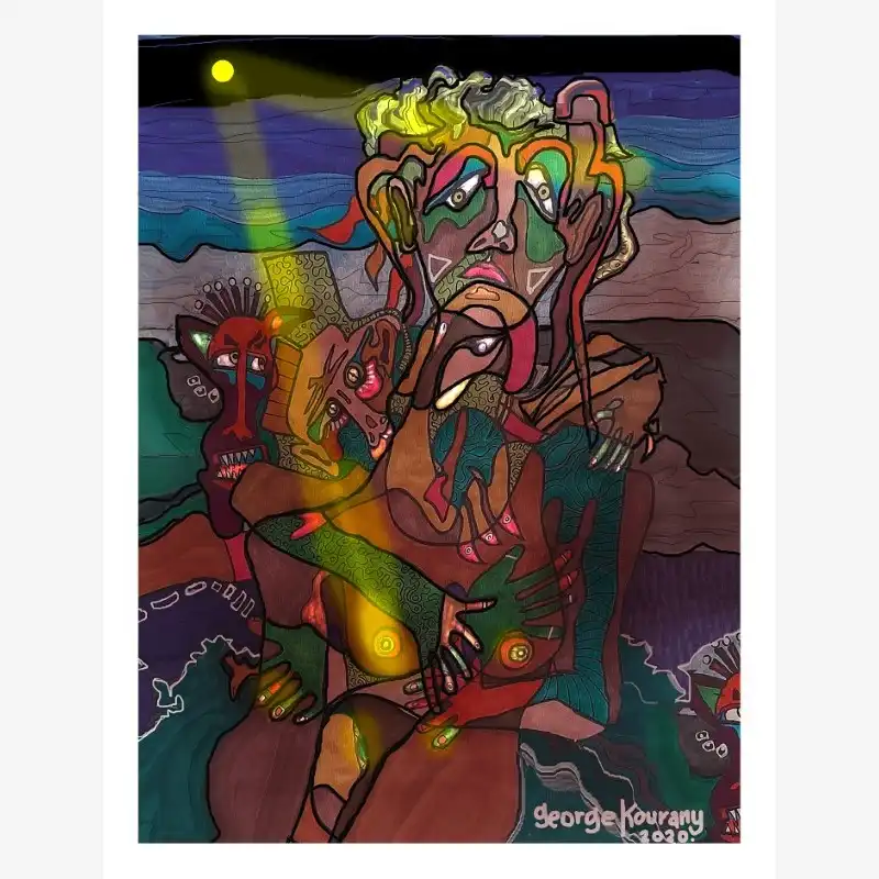 Explore emotion and form with this neo-figurative artwork. Featuring human figures and abstract elements intertwined in an expressive composition, this painting invites reflection and sparks the imagination. Ideal for contemporary art lovers seeking pieces with emotional depth and bold visual language.