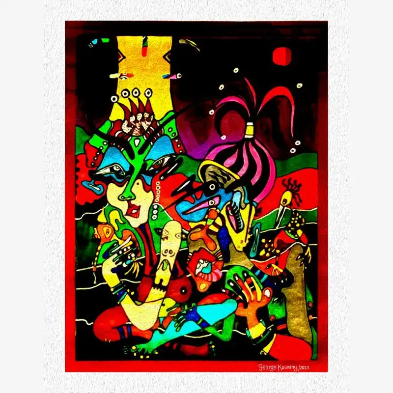 Explore emotion and form with this neo-figurative artwork. Featuring human figures and abstract elements intertwined in an expressive composition, this painting invites reflection and sparks the imagination. Ideal for contemporary art lovers seeking pieces with emotional depth and bold visual language.