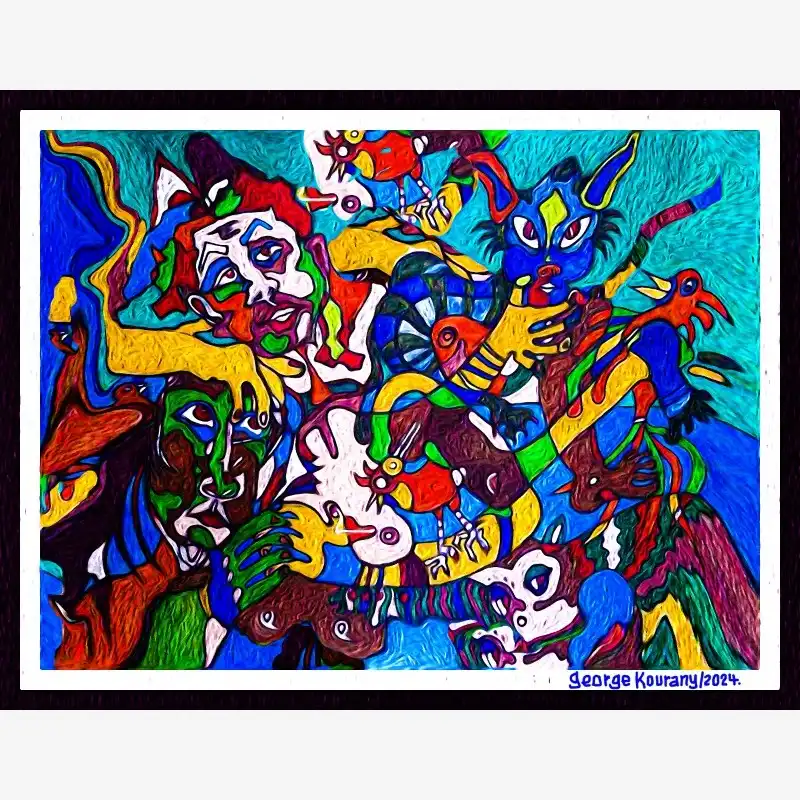 Explore emotion and form with this neo-figurative artwork. Featuring human figures and abstract elements intertwined in an expressive composition, this painting invites reflection and sparks the imagination. Ideal for contemporary art lovers seeking pieces with emotional depth and bold visual language.
