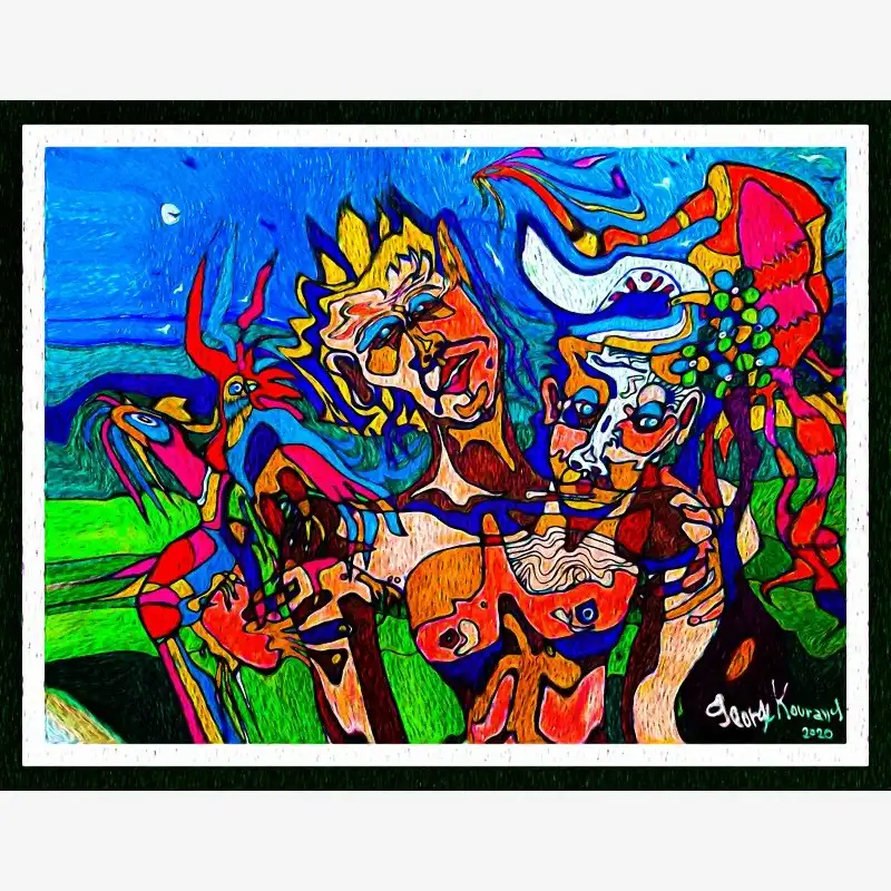 Explore emotion and form with this neo-figurative artwork. Featuring human figures and abstract elements intertwined in an expressive composition, this painting invites reflection and sparks the imagination. Ideal for contemporary art lovers seeking pieces with emotional depth and bold visual language.