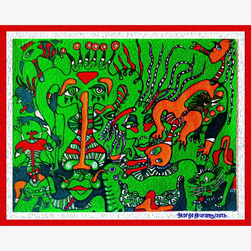 Explore emotion and form with this neo-figurative artwork. Featuring human figures and abstract elements intertwined in an expressive composition, this painting invites reflection and sparks the imagination. Ideal for contemporary art lovers seeking pieces with emotional depth and bold visual language.