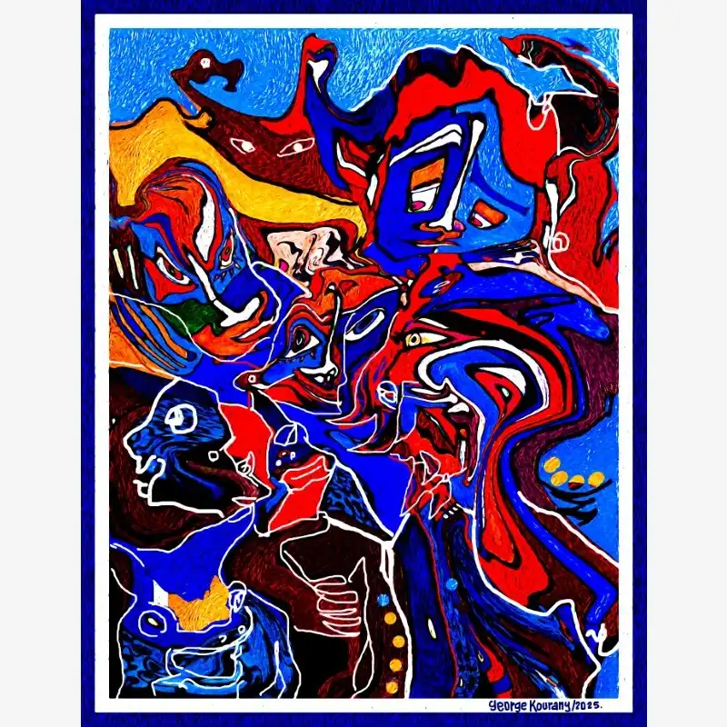 Explore emotion and form with this neo-figurative artwork. Featuring human figures and abstract elements intertwined in an expressive composition, this painting invites reflection and sparks the imagination. Ideal for contemporary art lovers seeking pieces with emotional depth and bold visual language.