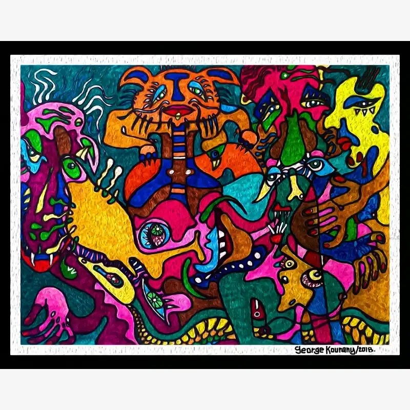 Explore emotion and form with this neo-figurative artwork. Featuring human figures and abstract elements intertwined in an expressive composition, this painting invites reflection and sparks the imagination. Ideal for contemporary art lovers seeking pieces with emotional depth and bold visual language.