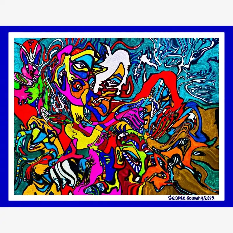 Explore emotion and form with this neo-figurative artwork. Featuring human figures and abstract elements intertwined in an expressive composition, this painting invites reflection and sparks the imagination. Ideal for contemporary art lovers seeking pieces with emotional depth and bold visual language.
