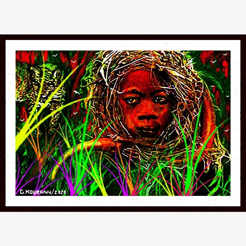 Esta pintura rinde homenaje a las raíces africanas y la rica cultura panameña, fusionando símbolos y colores que representan la historia y tradición de su ascendencia. Con una estética vibrante y profunda, es una obra que conecta el pasado con el presente, ideal para quienes celebran la diversidad cultural.
