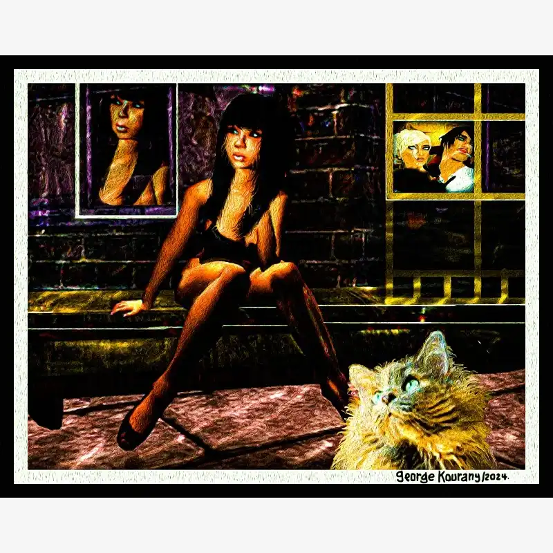 Esta obra captura la delicada conexión entre mujeres y gatos, fusionando la gracia femenina con la independencia felina. Con trazos fluidos y colores suaves, transmite una sensación de serenidad y misterio. Perfecta para aquellos que aprecian el arte que celebra la libertad, la elegancia y la belleza en su forma más pura.