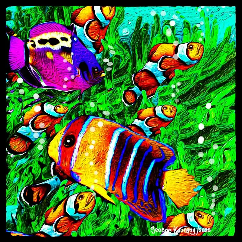 Sumérgete en la belleza del arte de peces, donde el color y el movimiento se fusionan en composiciones llenas de vida. Cada obra captura la elegancia y diversidad del mundo acuático, aportando frescura y energía a cualquier espacio. Ideal para quienes disfrutan de la naturaleza marina y su vibrante dinamismo.